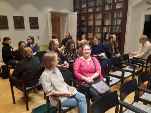 Suomalaisen Tiedeakatemian tiloissa Mariankadulla oli läsnä parisenkymmentä tutkijaa, ja lisäksi iso joukko osallistui koulutukseen etänä. Koulutus tarjosi työvälineitä vaikuttavan ja kiinnostavan puheenvuoron rakentamiseen, siihen, miten puheenvuoro puhutaan taitavasti ja omana itsenä, sekä esiintymisjännityksen kanssa kamppailuun. Useat paritehtävät antoivat mahdollisuuden jakaa kokemuksia kollegan kanssa – ja samalla tutustua muihin Tutkija tavattavissa -poolilaisiin. Myös kehollista läsnäoloa treenattiin käytännön harjoitusten kautta.